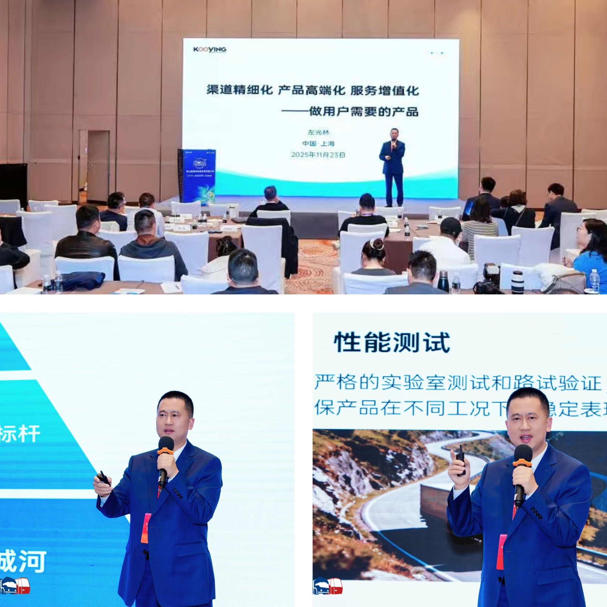 左董以《渠道精细化、产品高端化、服务增值化,做用户需要的产品》为题,结合行业新能源转型与全球化发展趋势,系统阐述了公司在渠道、产品与服务三大维度的核心战略:渠道方面,注重精准触达与高效协同,以适配海内外市场布局;产品方面,锚定高端化升级路径,积极对标国际标准与新能源商用车的技术需求;服务方面,突破传统维保边界,着力构建覆盖全生命周期的增值服务体系。演讲内容贴近实战、逻辑清晰,获得了现场嘉宾的广泛认同与积极反响。